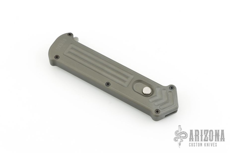 This Cupid #00102 by Rob Dalton features a bead blasted double edged partially serrated blade. The handle is comprised of a machined and gray anodized aluminum frame with bead blasted, tip down pocket clip. Excellent condition.