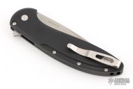 This Cambria flipper by Pro-tech features a bead blast and tumble finished blade with flipper. The handle has a black aluminum frame with TechnoCarbo red inlay in the frame and black lip pearl push button, tip up deep carry stainless steel clip. Rides on bearings, nice detent, lockup and blade seating. Comes with original box, pouch and papers. New from maker!