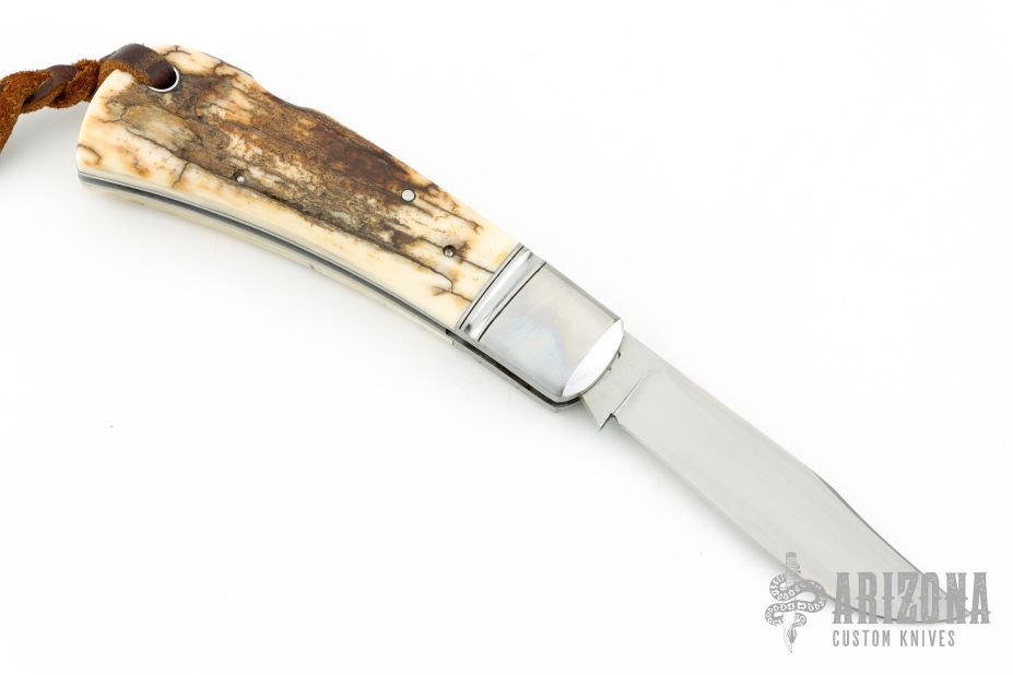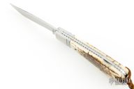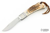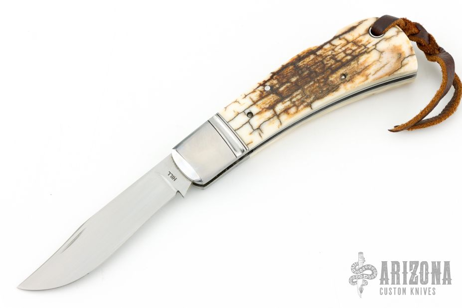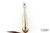 This Lockback from Tobin Hill features a hand rub satin finished clip point blade with nail nick. The handle has pinched and fluted stainless steel bolsters with beautiful mammoth ivory scales, stainless steel escutcheon, stainless steel liners with fileworked spines, stainless steel backspacer/lockbar. Includes a zippered case. Has some light scratches, excellent condition otherwise.
