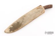 This Knife by Daniel Winkler features a drop point blade forged from an old file, top edge .194" blade stock and 1.267" blade depth, hidden tang construction. The handle has a stag grip with steel collar, pins, and butt plate. Comes with a raw hide leather sheath. there is some patina on the knife, otherwise in excellent condition.