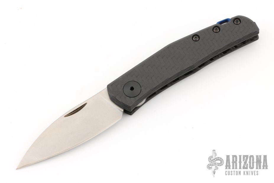 - Stonewashed drop point blade made from CPM 20CV premium steel.