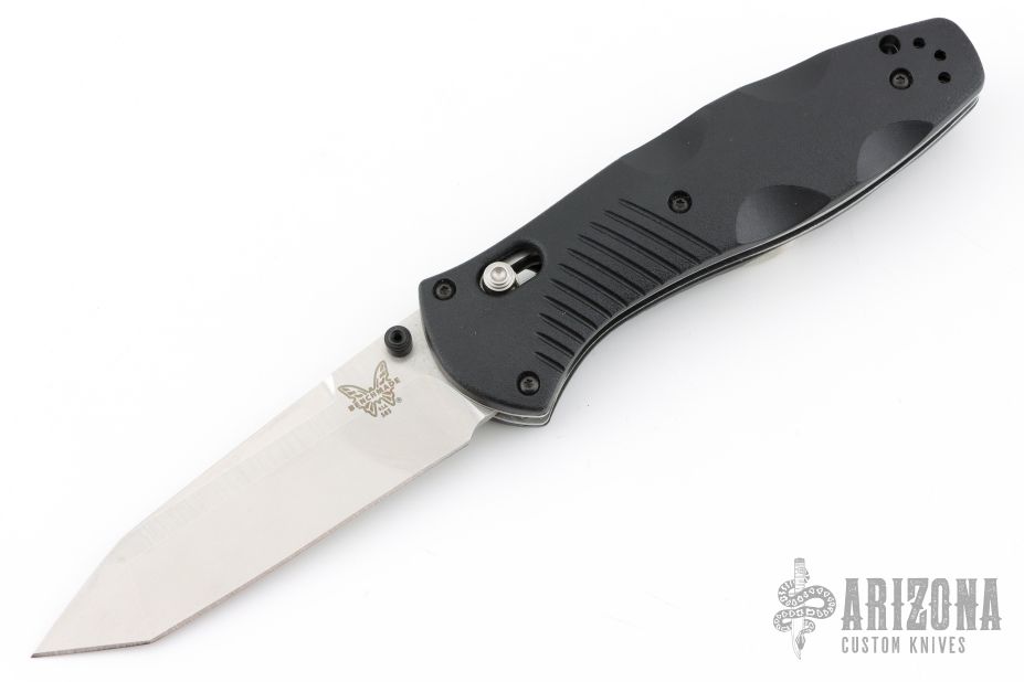 This 583 Barrage from Benchmade features a tumble finished drop point tanto style blade with swedge and dual thumbstuds. The handle is comprised black FRN scales over stainless steel liners and FRN backspacer. This knife also features the AXIS lock mechanisim and sliding safety on spine. Includes original packaging and paperwork. Excellent condition.