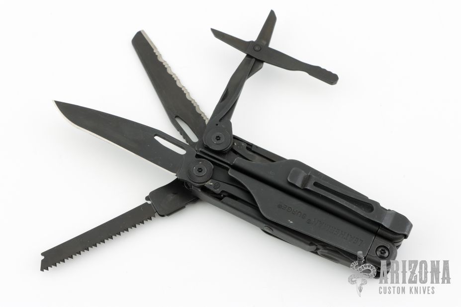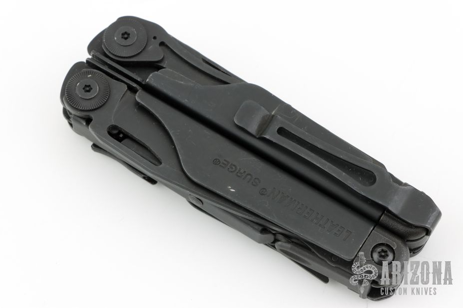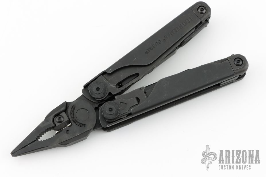The Leatherman Surge is one of our two largest multi-tools; a real powerhouse, built with our largest pliers, longest multi-tool blades and easy-to-use locks. A unique blade exchanger, replaceable premium wire cutters and four outside-opening blades give you quick access to the tools you use most. The Surge was built for tough jobs and the hands that do them.