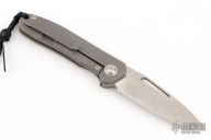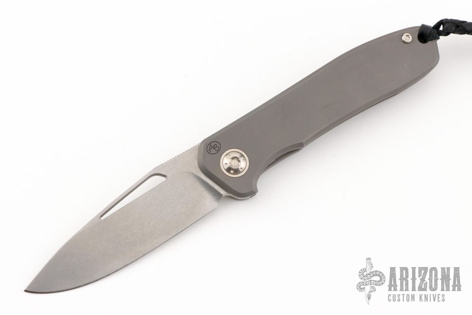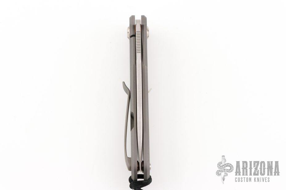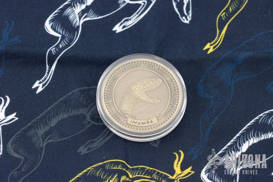 Arno Bernard's iMamba Frame Lock is a EDC designed for high performance and hard use. The blade is stonewashed blade with thumbhole and notched thumbrest. Ball bearing pivot. The handle is bead blasted titanium with bead blast finished titanium tip up clip with hidden screws. Comes with original box, papers, and coin. Has a few light scuffs, otherwise excellent condition.