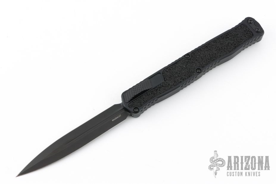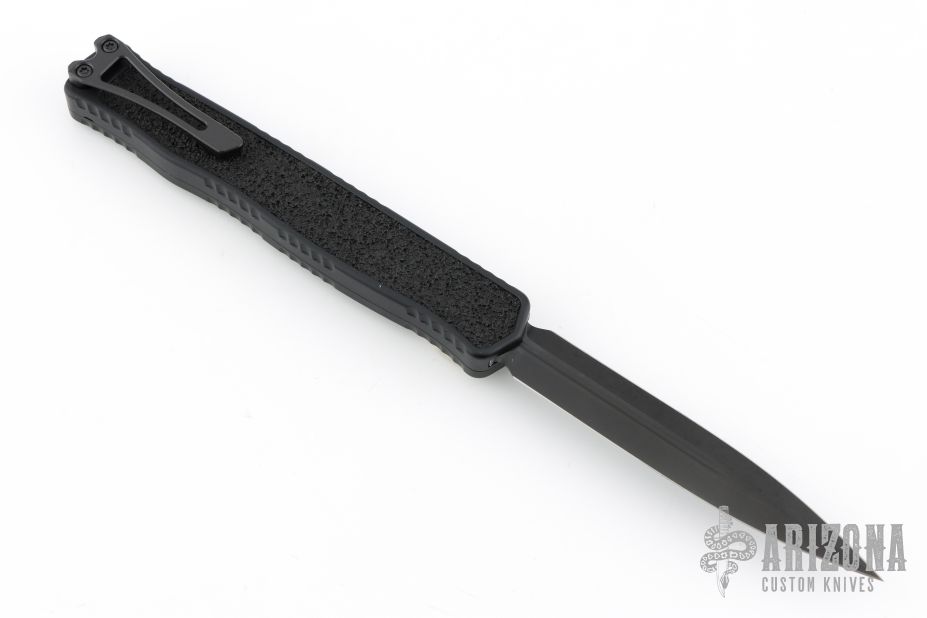 This Cleric II OTF by Heretic Knives features a DLC D/E Magnacut blade with fullers. The handle has a black aluminum frame with non-slip inlays, black stainless tip down clip and hardware. Comes with original box and lube. Excellent condition.