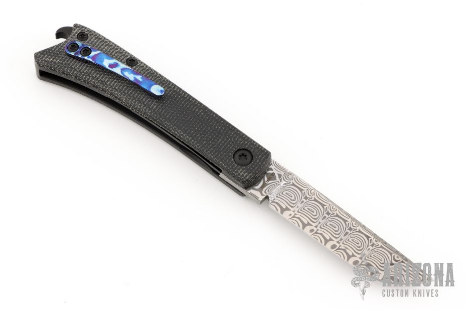 Home Products Silver Line Beer Buster Jr. Slipjoint - Black Micarta/Damasteel/Mokuti