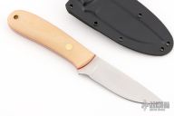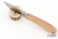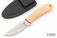 This K-16 Yukon Pro Skinner by Dozier Knives features a satin finished blade with .130" blade stock and 1.029" blade depth, full tang construction. The handle has bone linen micarta scales with red liners, brass pins and lanyard hole. Comes with kydex sheath with belt clip. New from maker.