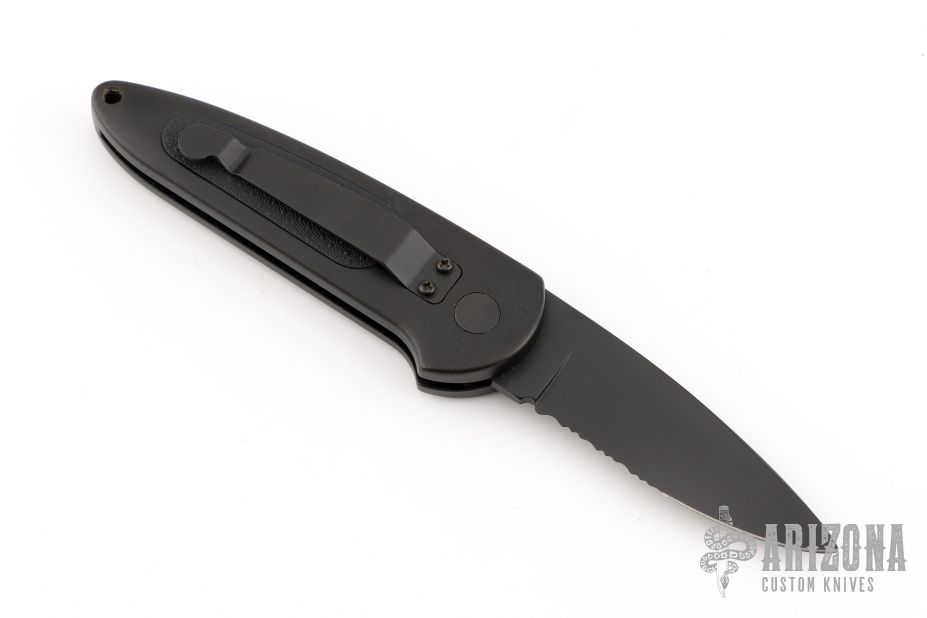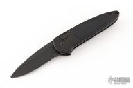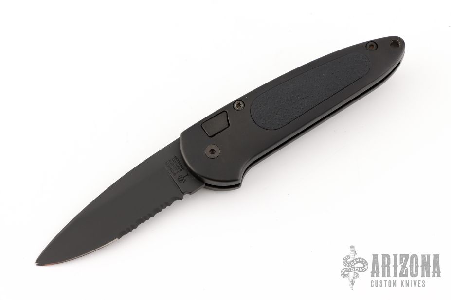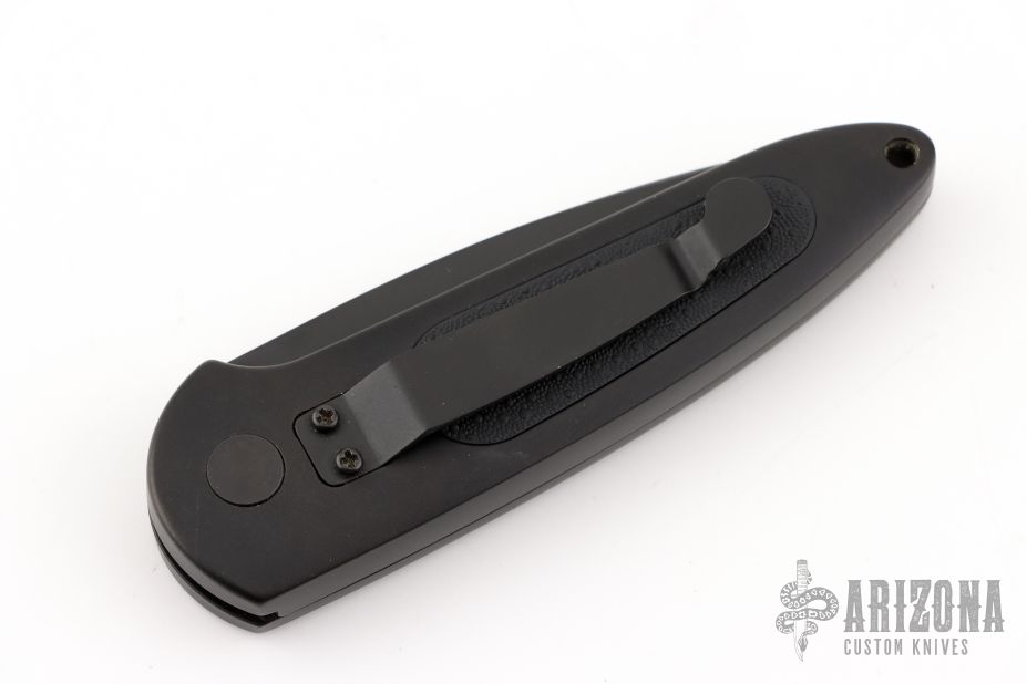 This Speed Lock by Boker features black coated aluminum handle with black Kraton insets, and a black coated blade of Solingen stainless steel, tip down stainless steel clip. Comes with original box, sheath and papers. Excellent condition.