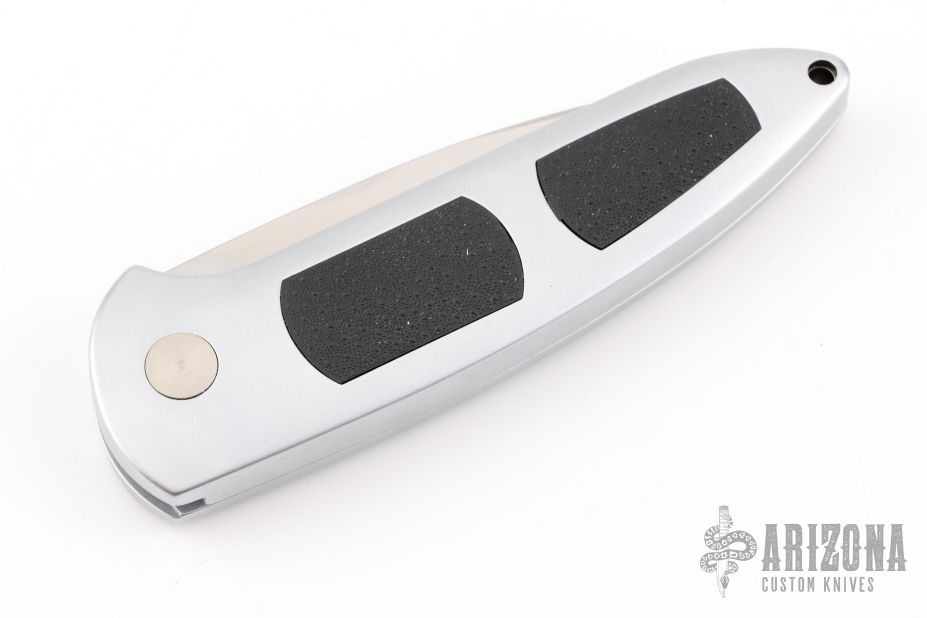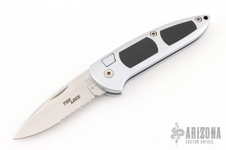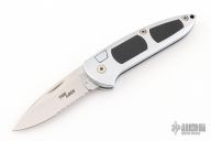 This Top Lock by Boker features silver coated aluminum handle with black Kraton insets, and a stonewashed blade of Solingen stainless steel. Comes with original box and papers. Excellent condition.