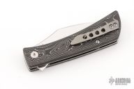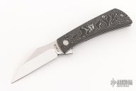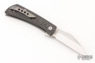 This Nocturnal by Finch Knife Co features a mirror polished blade with notched flipper. The handle has silversonic carbon fiber scales, stainless steel liners and a stonewashed titanium tip up clip. Comes with original box. Excellent Condition.