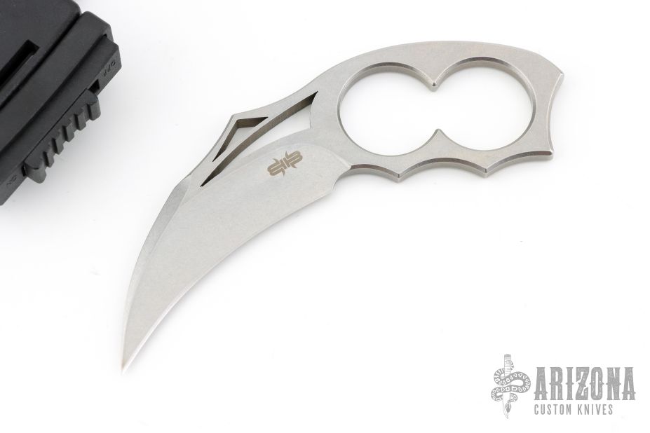 This Silent Enforcer has a stonewash finished hawkbill blade with false top edge, .187" blade stock, 1.211" blade depth. Handle is stonewash finished. Comes with Kydex sheath with belt clip. Could also be worn as a neck knife. New from maker!