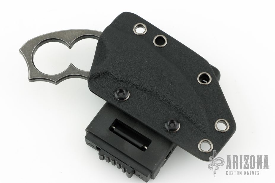 Inspired by our Enforcer folder, the Silent Enforcer is the newest addition to our neck knife lineup. The recurve blade is made from D2 tool steel and is flat ground by hand. The unique double finger hole design differs from our previous neck knives and provides added protection around the knuckles. This added benefit also makes it more effective in punching scenarios. The Silent Enforcer comes with a handmade kydex sheath.