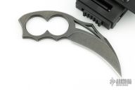 This Silent Enforcer has an acid stonewash finished hawkbill blade with false top edge, .187" blade stock, 1.211" blade depth. Handle is acid stonewash finished. Comes with Kydex sheath with belt clip. Could also be worn as a neck knife. New from maker!