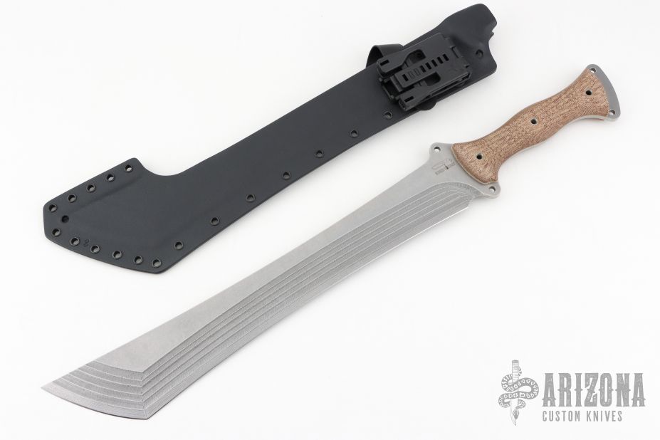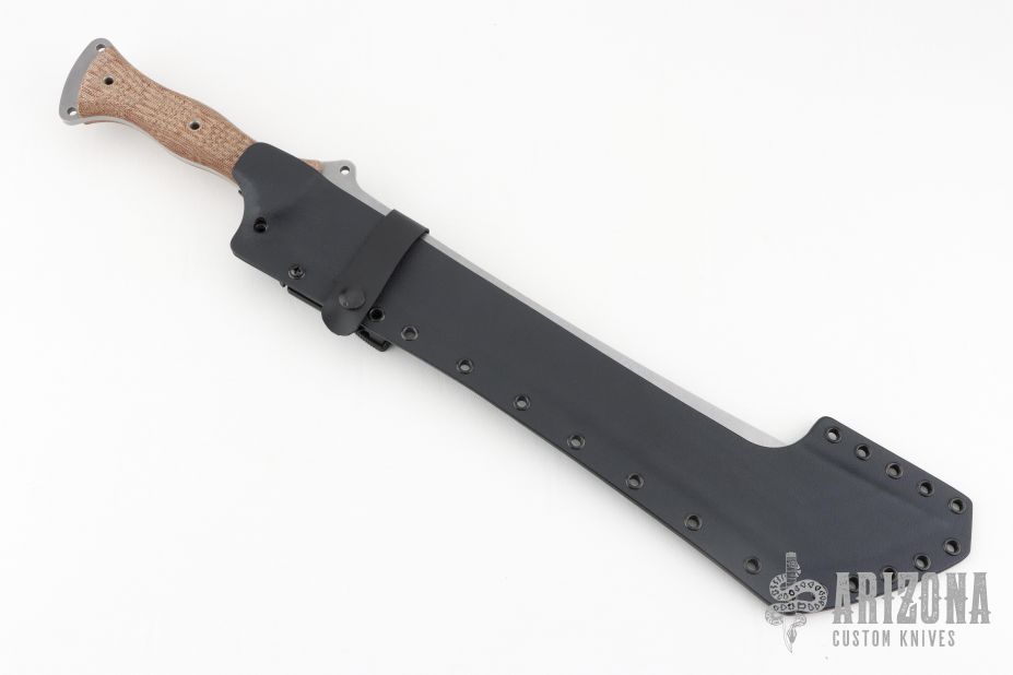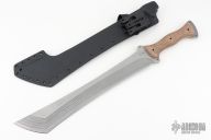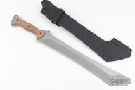 This Hognose War Sword by Busse Combat features a stonewashed blade with corogated bevel technology, .190" blade stock and 2.565" blade depth, full tang construction. The handle has natural canvas micarta scales. Comes with a custom Kydex sheath by BuyBrown. Excellent condition.