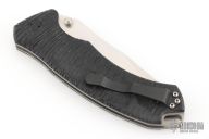 This Olamic Cutlery designed folder features a satin finished blade with notches in blade spine and dual thumbstuds. The handle has contoured G10 scales over titanium liner and a black steel tip up pocket clip.  Includes a padded zippered case.  Excellent Condition.