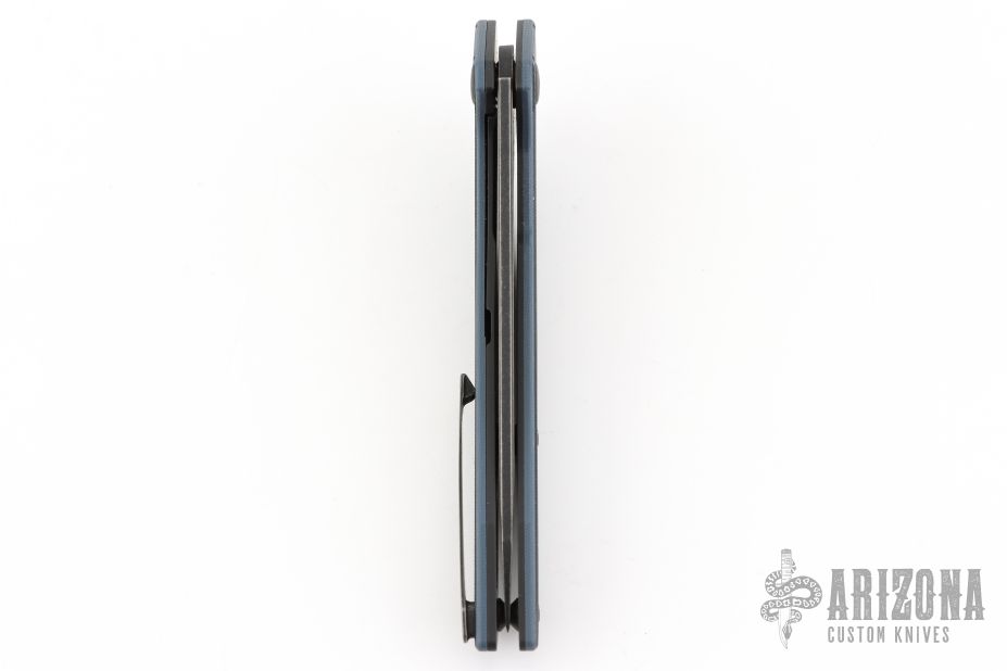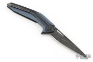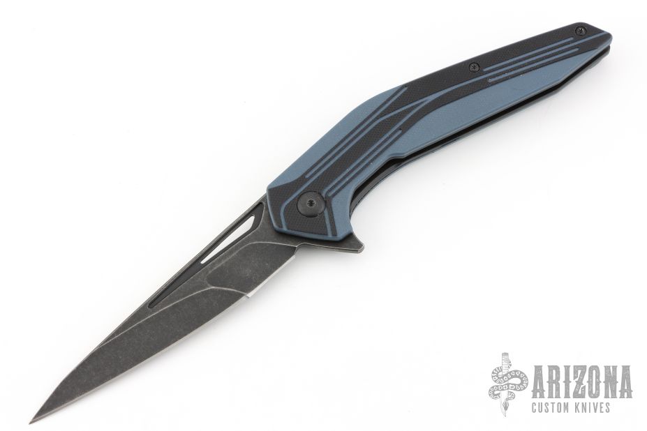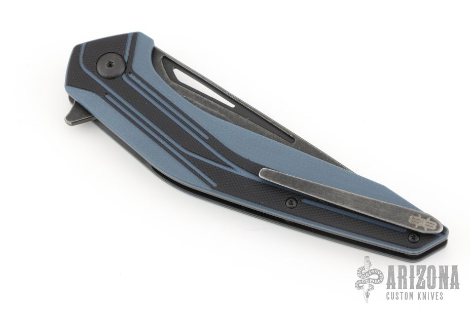 This Hardwire model is outfitted with a black and blue G-10 handle and a black finished blade. The Hardwire flipper knife from Brous Blades offers a unique futuristic aesthetic in a slim EDC-friendly build. This model has a D2 tool steel blade with an angular hollow grind and a two-tiered milled cutout that serves as a secondary opener. The Hardwire's handle is built with black/blue layered G-10 scales over skeletonized stainless steel liners to provide lightweight, durable construction. Comes equipped with a 3D-milled pocket clip for right-hand, tip-up carry. Features: Resilient D2 tool steel stands up to your toughest daily tasks. Textured G-10 handle provides a comfortable, no-slip grip surface. Proprietary Brous Bearing System paired with a ceramic detent ball keeps flipping action silky smooth and responsive. Comes with original box and papers. Excellent condition.