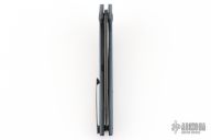 "Jason Brous began his efforts in knifemaking with the benefit of nearly 10 years of experience in CNC machining. His father owns a shop that specializes in the custom machining of high-precision components, mainly for the medical industry. Jason spent a lot of time in his father’s shop while growing up, and by his mid teens was actively helping out with production. His skills and knowledge steadily increased and by the time he was 20 he was a seasoned and very competent machinist. Jason's interest in knives actually began with art - specifically a style called “Bio-mechanical” - as practiced by one of his favorite artists, a Brazilian painter and tattooist named Lango. Biomechanical art (also called Biomech) is a surrealistic style of art that combines elements of machines and robotics with organic animal features. Intrigued by this style of art and its similarity to many fantasy knives, Jason figured that knifemaking would be a natural extension of his metalworking skills and an appropriate medium for his artistic ideas. Although he had no specific training in knifemaking, in 2010 he designed and made his first knife - a fantasy design with a Biomech flavor. Through persistent trial and error, Jason changed his style of knife design to focus on functional simplicity, while still maintaining a strong artistic signature. His early successes came in the form of a series of stout neck knives with dual finger-hole grips. Fans of these “Silent Soldier” neck knives began asking for other expressions of the design. Since then, Jason has created numerous variations including a clip point version, a tanto version and the very popular folder version called the Silent Soldier Flipper."