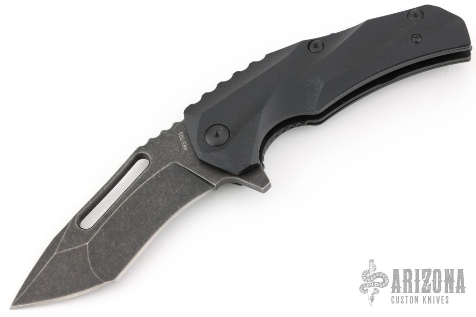 "Jason Brous began his efforts in knifemaking with the benefit of nearly 10 years of experience in CNC machining. His father owns a shop that specializes in the custom machining of high-precision components, mainly for the medical industry. Jason spent a lot of time in his father’s shop while growing up, and by his mid teens was actively helping out with production. His skills and knowledge steadily increased and by the time he was 20 he was a seasoned and very competent machinist. Jason's interest in knives actually began with art - specifically a style called “Bio-mechanical” - as practiced by one of his favorite artists, a Brazilian painter and tattooist named Lango. Biomechanical art (also called Biomech) is a surrealistic style of art that combines elements of machines and robotics with organic animal features. Intrigued by this style of art and its similarity to many fantasy knives, Jason figured that knifemaking would be a natural extension of his metalworking skills and an appropriate medium for his artistic ideas. Although he had no specific training in knifemaking, in 2010 he designed and made his first knife - a fantasy design with a Biomech flavor. Through persistent trial and error, Jason changed his style of knife design to focus on functional simplicity, while still maintaining a strong artistic signature. His early successes came in the form of a series of stout neck knives with dual finger-hole grips. Fans of these “Silent Soldier” neck knives began asking for other expressions of the design. Since then, Jason has created numerous variations including a clip point version, a tanto version and the very popular folder version called the Silent Soldier Flipper."