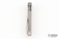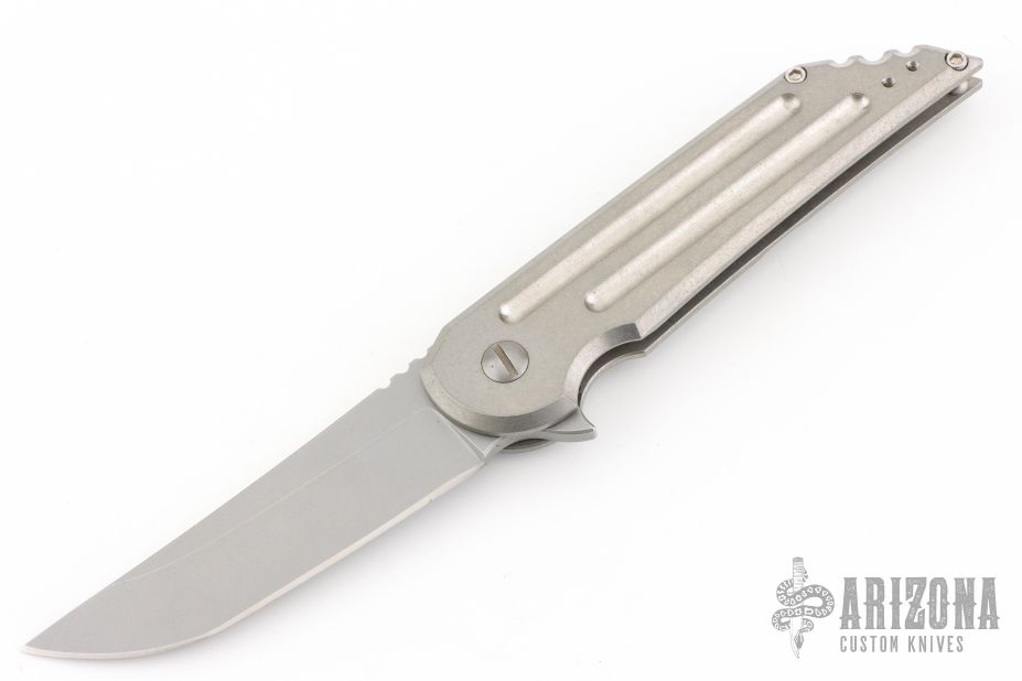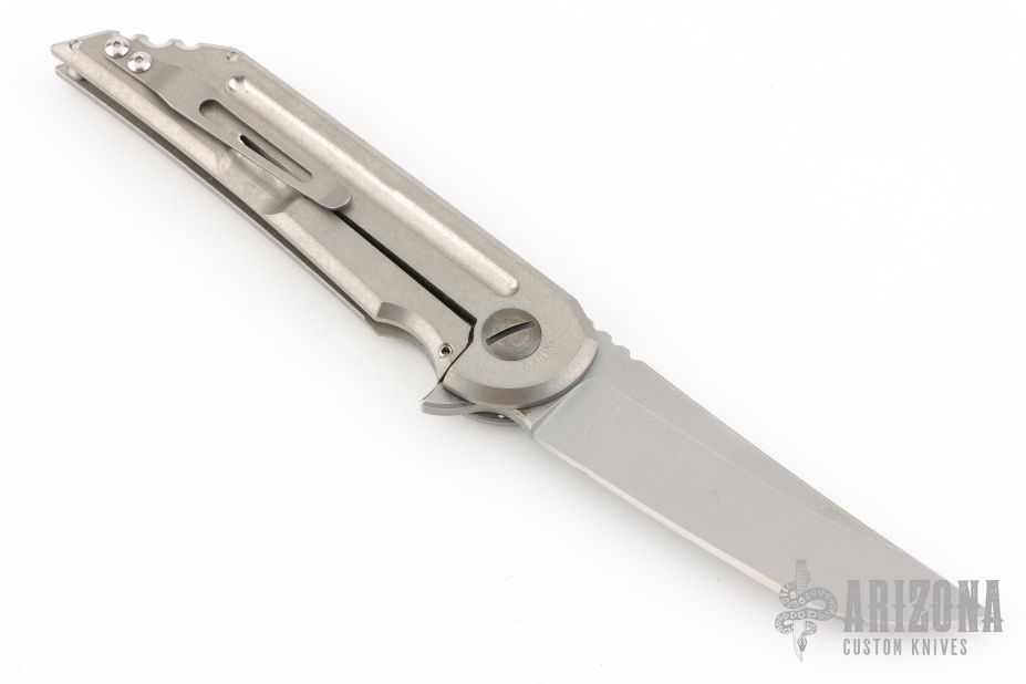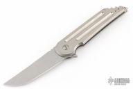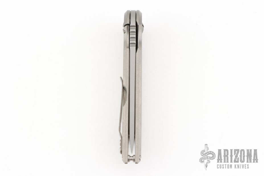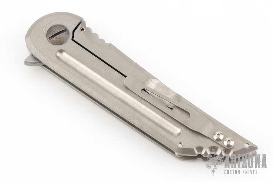 The Kwaiback MK6 by Hoback Knives features a stonewashed blade with notched thumbrest and flipper. The handle has a stonewashed titanium frame and tip up clip. Rides on bearings, nice detent, lockup and blade seating. Includes the original box.  Excellent Condition.