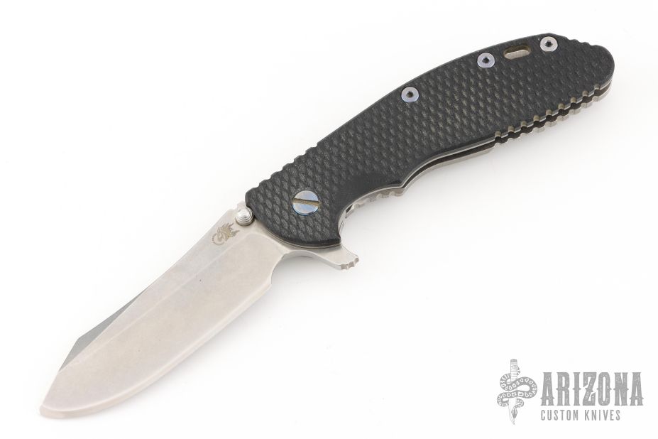 This XM-24 Skinner from Rick Hinderer Knives features a 4" stonewashed, Skinner ground blade and a textured G10 scale. Clip can be mounted for tip up or down carry. Blade is centered when closed, locks up with no play. This is the flipper model. Has a few light scuffs/scratches otherwise the knife is in good condition.