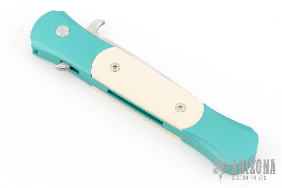 "Classic styling, modern 3D CNC Machining, and unequaled craftsmanship have all come together perfectly for our newest auto knife – THE DON. The frames and inlays for each DON are completely 3D machined, curved and fluted for a completely custom feel. Super smooth coil spring action! Because of the complex machining and amount of detailed hand work involved with the DON, their production will be very limited each year."