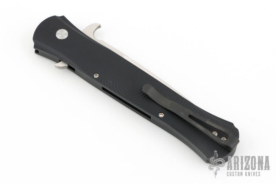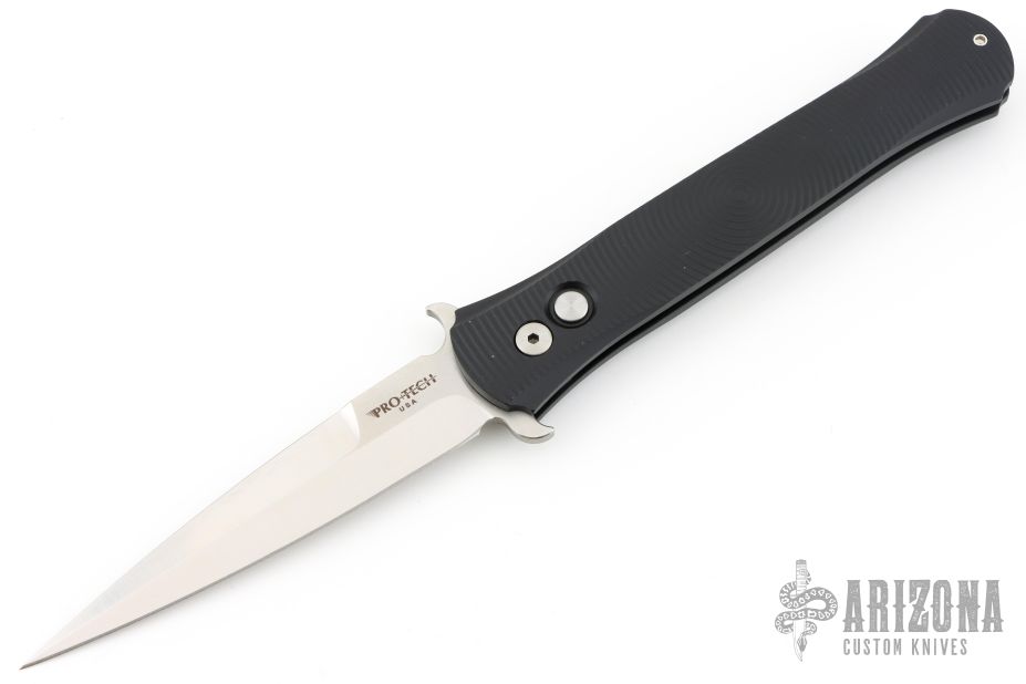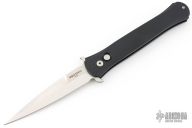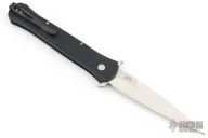 This Large Don by Pro-Tech features a satin blade with false top edge. The handle has a black aluminum handle with 3D milled rings, black tip up stainless steel clip. Comes with original box and papers. Excellent/new condition. PR3 #141