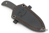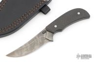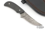 This Neck Knife from Olamic Cutlery features a Damascus blade with .124" blade depth and .721" blade stock, full tang construction. The handle carbon fiber scales. Includes leather neck sheath.  Excellent condition.