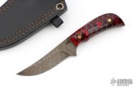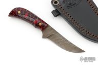 This Neck Knife from Olamic Cutlery features a Damascus blade with .123 blade depth and .695" blade stock, full tang construction. The handle C-Tek scales. Includes leather neck sheath.  The blade has some oxidation on the blade otherwise the knife is in Excellent condition.