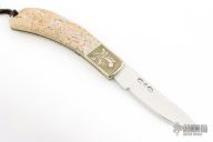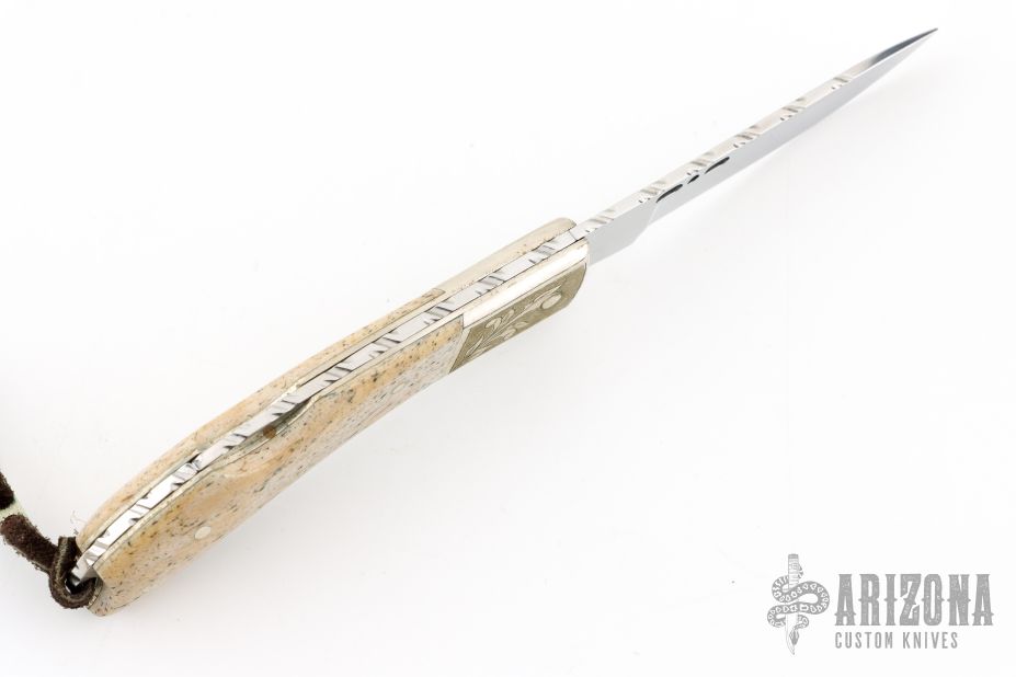 Mike "Whiskers" Allen and his wife Denise have been in the custom knife business since 1984. Mike has been a member of the Knife Maker's Guild since 1989. He has built a great reputation specializing in custom folders, scale release autos, and bolster release autos. "I take pride in sole authorship of my knives. From the basic design, grinding and assembly, to the embellishments of file work, and engraving."