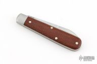 This Tidioute Cutlery 142116 Lick Creek Boy's Knife by Great Eastern Cutlery features a satin finished spearpoint blade with swedge and long pull. The handle has steel bolsters and micarta covers and steel pins over steel liners and backspring. This knife features a half stop and the blade is flush in the open and closed positions. Includes original cardboard tube. Excellent condition.