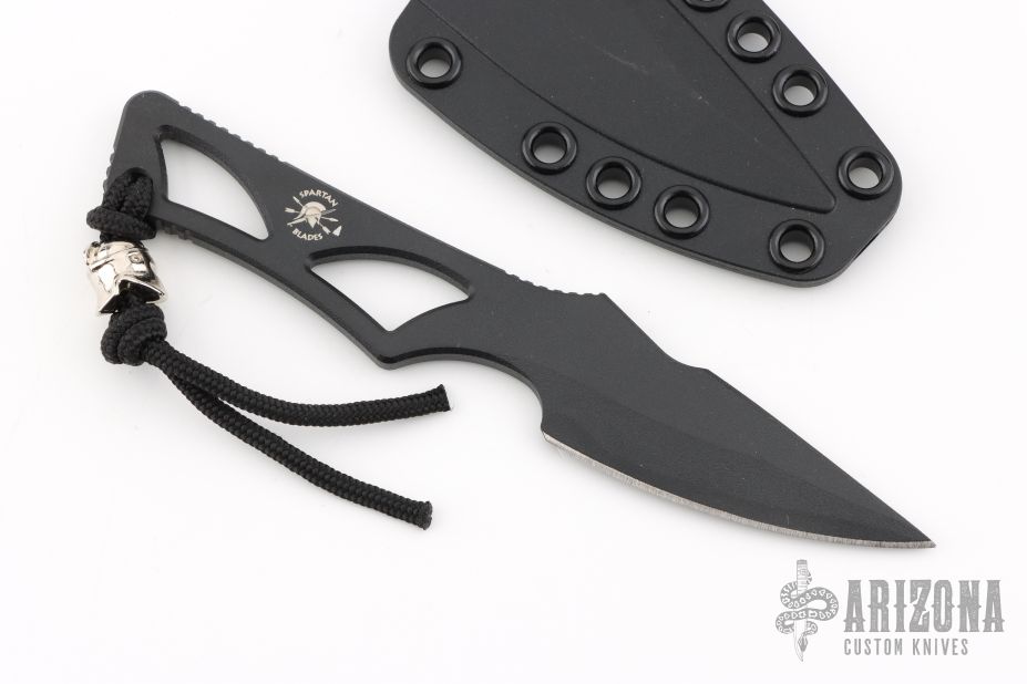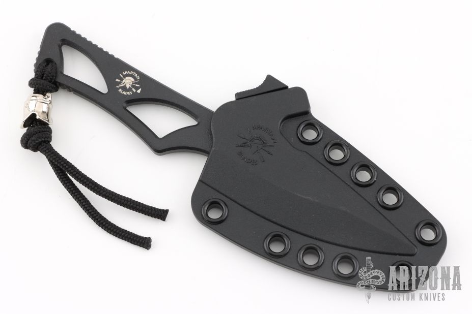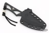 Enyo - a fitting name for this knife, Enyo, was an ancient goddess of war, acting as a counterpart and companion to the war god Ares. This companion knife can be worn around the neck or in a pocket / inside the waist band (IWB). The Enyo’s design makes it a comfortable everyday carry fixed blade with great ergonomics. Enyo is perfectly suited for daily cutting tasks, and is always ready to assist the user. The molded retention sheath. This Enyo has a black coating. Excellent condition.
