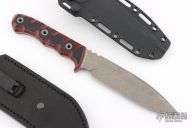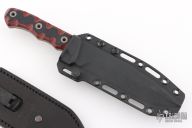 The Mercenary is the latest in the T.Kell lineup. We drew from our experience making world class blades, took your input and created a blade that is beyond any found elsewhere. Starting with the Mercenary and moving to all our products is a new addition to our heat treatment process that makes the 80CRV2 steel preform light-years beyond what has been previously known in the industry. In true T. Kell style we have taken our ‘no BS just blades’ approach to another level with the Mercenary and created a blade that is extremely versatile, perfectly balanced, and durable beyond belief. The 5.5″ long. 1.375″ wide spear point blade features a false reverse edge that makes piercing a breeze. We have integrated a dual purpose choil that not only aides in sharpening but doubles as a finger well for a choked-up grip when you need agility and speed from your blade for up close blade work. Whether you have wet bare hands or need heavy gloves you will find that our famed ergonomic contoured handle, the integral guard, and heavy jimping are perfectly shaped and placed to keep your hands exactly where they belong, on the handle and off the blade. The T. Kell Grenade Grips are not for appearance (although they look incredible), they were designed for maximum grip, contoured to prevent “hot-spots” and angled to pull the blade into your hands. We are known for our blade ‘flow’ with perfected balances and the Mercenary does not disappoint. This blade feels light and fast while it is a full tang thick steeled beast up for any challenge you can throw at it. When you pick up the Mercenary, you will know it was designed and built to go to work. The Mercenary is at home in the back woods, on the battlefield, in your toolbox and anywhere you need a blade that you can trust. Backed by our zero questions asked ‘Life of The Knife Warranty’