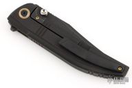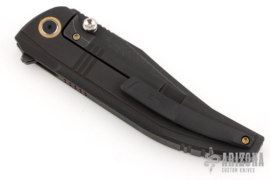 - Blade: Clip point blade with a black stonewash finish made from Bohler M390 steel.