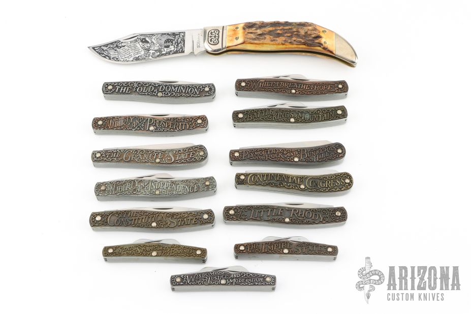 Vintage Parker Schrade USA Bicentennial Pocket Knife Set – Thirteen Colonies Series (1976)