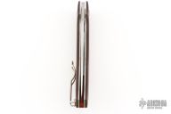 The handle of the Kapara features full, skeletonized stainless steel liners that form the foundation of its high-strength Compression Lock mechanism. The liners are capped by stunning solid burlap Micarta scales that are meticulously 3D machined to give them a subtle radius. This detail complements the sophisticated styling of the handle profile to offer an exceptionally secure and comfortable grip. An index-finger choil at the base of the blade allows a forward grip for enhanced control and helps draw attention to machined details on both sides of the blade's pivot. Symbolic of the knife's name, the Kapara proudly features a red G10 backspacer that provides a visual accent and added structural strength, while leaving most of the handle's back open to reduce weight and simplify cleaning.