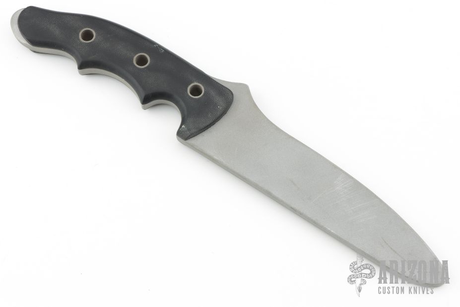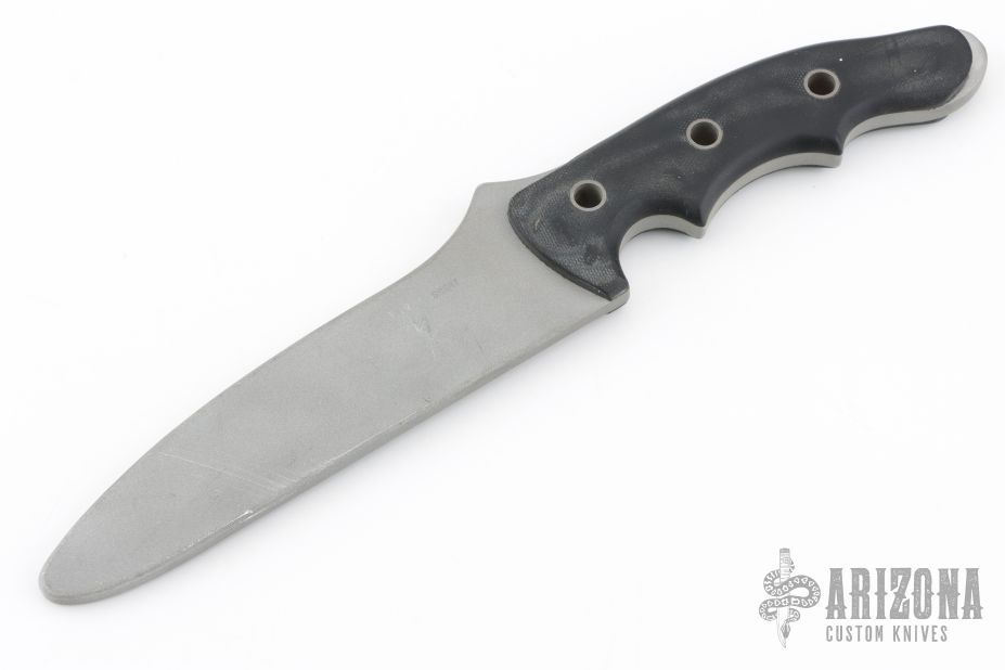 This trainer by Shane Sibert features a bead-blasted, unsharpened trainer blade with a full tang construction.  .259" Stock.  1.549" Blade Depth. The handle is fitted with black micarta scales for a secure grip. The blade is aluminum.  Has scratches otherwise if in great condition.