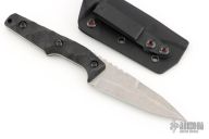 This Huginn EDC by Bawidamann Blades was named after Odin’s Raven. It features a stonewash finished blade with notched thumbrest and sharpened top edge, .100" blade stock and 1.211" blade depth, full tang construction. The handle has IM Bawidamann Chunked Pattern Carbon Fiber scales (proprietary Carbon fiber composite). Comes ready to carry with the Bawidamann Uberscabbard. New from maker.