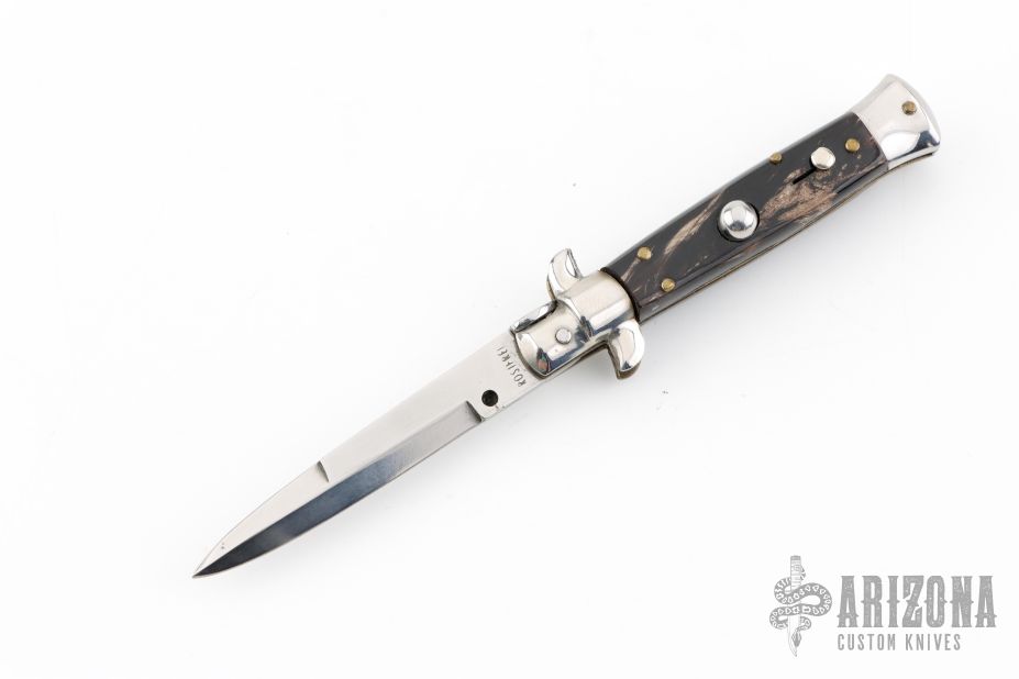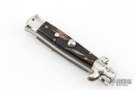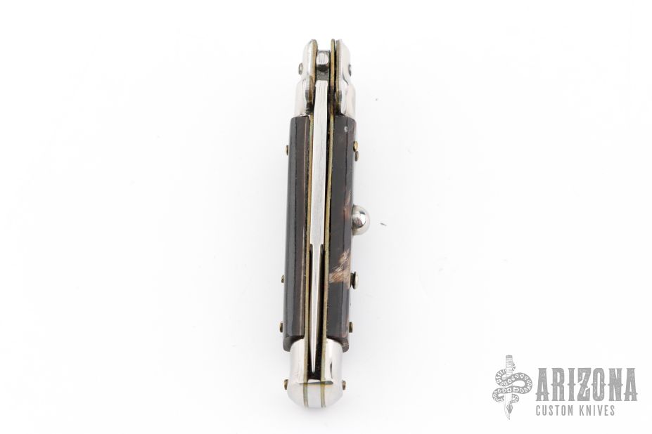 This Swivel Bolster features a mirror finished blade with false top edge. The handle has nickel silver bolsters, brass liners and buffalo horn scales. Mild steel backsrping. Excellent Condition.