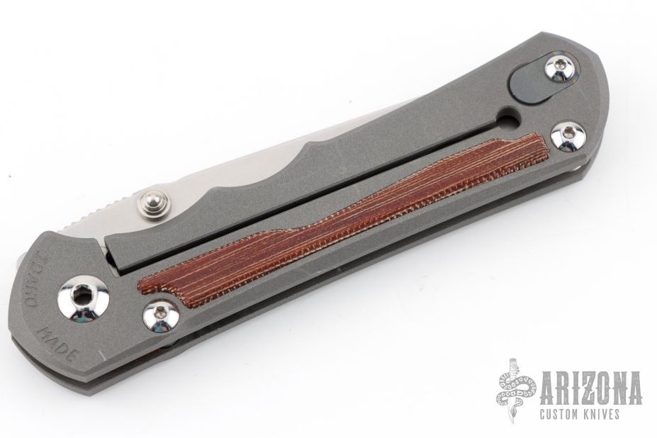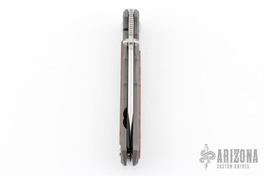 This Sebenza 25 from Chris Reeve Knives features a tumble finished blade with a notched thumbrest and dual thumbstuds. The handle has a bead blasted titanium frame with natural canvas micarta inlays, no clip, but has a filler tab. Comes with a Chris Reeve box. Has some scuffs, otherwise excellent condition.