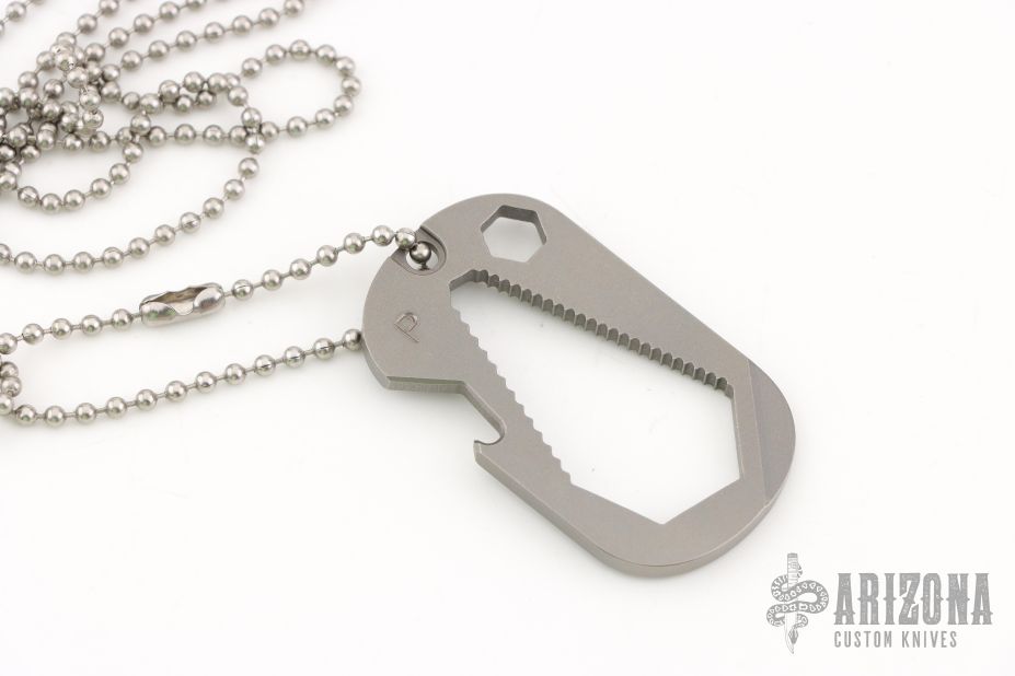 A highly versatile, precision milled, titanium one piece tool with the same footprint as the universally recognized American Military issue “Dog Tag.”