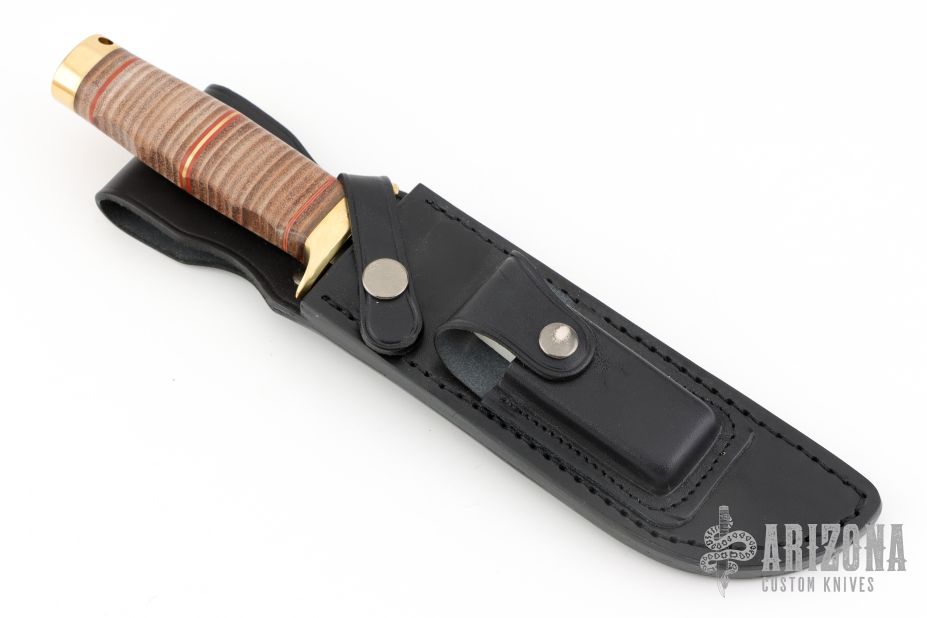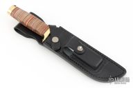 Master Hattori has reproduced 50 special limited Anniversary knives, and just came up in right time of the 50th Anniversary year and month. It features original 6-1/4" Hollow ground Gunblued SK-5 carbon steel Bowie blade etched with "Vietnam War 50th Anniversary 1955-1975" and "50 Limited Edition of MACV-SOG Knife" on blade, and "De Oppresso" Special Forces Crest on tang. Each serial number is engraved on the bolster. The stacked Leather handle has Red Fiber & Gold Brass spacers (Vietnam flag colors) and solid Brass bolster & butt end.