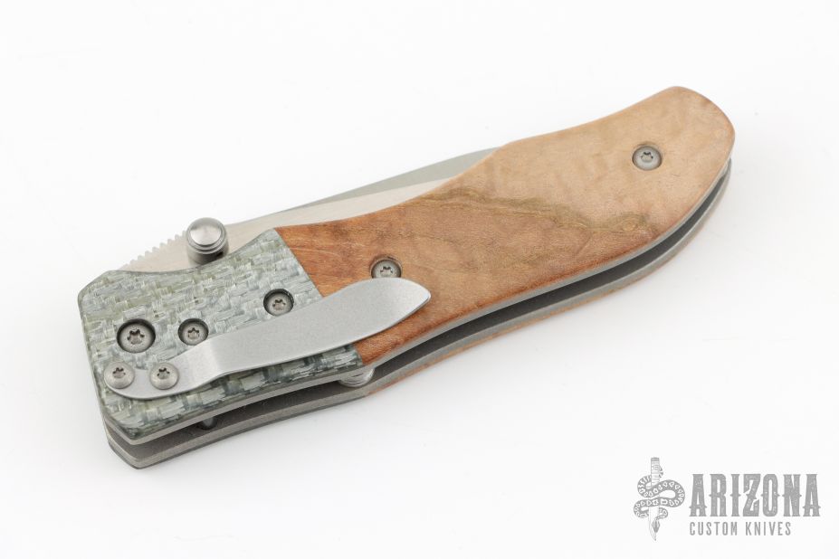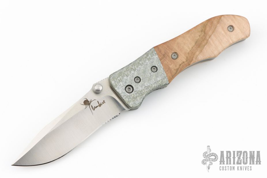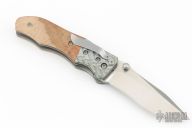 "I believe that in order to make a superior knife you must use superior materials. That is why I work with top grade, high-tech materials. The steels I generally use in my folders and fixed blades are CPM S30v, CPM 154 CM, BG-42, and Damasteel. The handle materials I mostly use range from G-10, Micarta, and carbon fiber to mother of pearl and fossilized mammoth ivory. I exclusively use 6al/4v titanium for the liners in my folders. I mostly make my bolsters from materials such as 6al/4v titanium, damascus, carbon fiber, timascus or mokume. When making Japanese style blades I generally use 1050, 1084, or L6. The handles will usually consist of a phenolic handle covered in stingray skin then wrapped with a nylon cord that has been impregnated with resin to give it maximum strength, toughness, and longevity. I am constantly striving for perfection in creating, for what I feel is one of the highest quality knives on the market today."