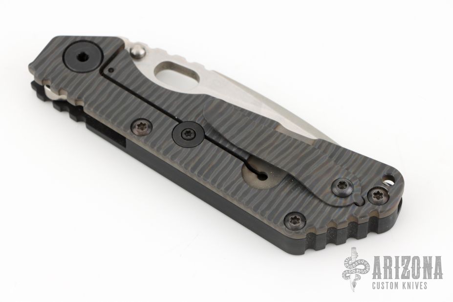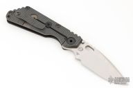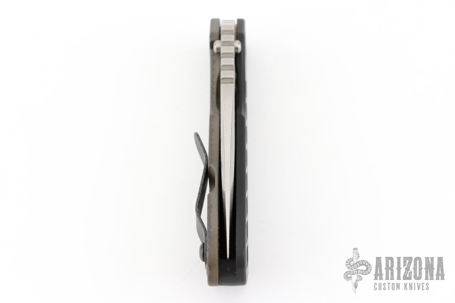 This SNG framelock folder by Mick Strider features a drop point blade and a black aluminum and flamed titanium frame and tip up titanium clip. Includes Hinderer "Lock Bar Stabilizer" for maximum reverse lock retention. Nice detent, lockup and blade seating. Has a couple light scuffs, otherwise excellent condition. Comes with a zippered case.
