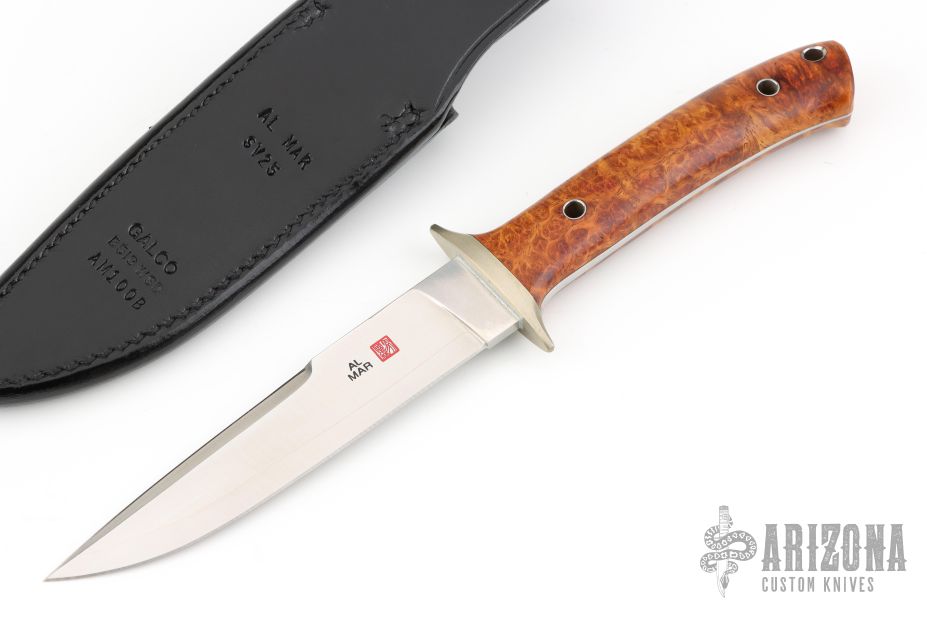 Al Mar started in the cutlery industry in 1968 in the employ of f Pete Gerber at Gerber Legendary Blades. Mar designed knives for Gerber until 1977 and, in 1978, founded Al Mar Knives. Since 1979, AL MAR Knives™ has been committed to making unique designs at quality levels that rival custom, hand-made knives. Today, each knife crafted by AL MAR is hand-finished and hand-sharpened by craftsmen dedicated to creating the very best possible. Each AL MAR knife features flat-ground blades for strength and superior performance – and that’s just one reason to trust the AL MAR name. Inducted into the Blade Magazine Cutlery Hall of Fame in 2009. Al passed away in 1992.
