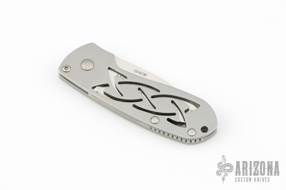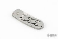 "Mind teasing innovation is put into motion in this cutting edge design. An ingenious mechanical LEVITATOR™ system in the stainless steel handle scale leverages the spring/pin system to effectively lock the blade open and closed. The stylish blade shape makes the cut with its high-grade blade steel. A multitude of laser cut and precision machined components come together in a pocket friendly representation of modern engineering wizardry." Has some light scuffs, otherwise excellent condition. Prototype December 2003.