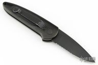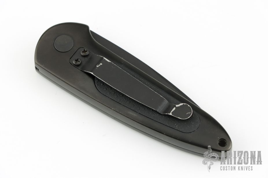 This Speed Lock by Boker features black coated aluminum handle with black Kraton insets, and a black coated blade of Solingen stainless steel, tip down stainless steel clip. Comes with original box and papers. Has some wear on the clip, otherwise excellent condition.