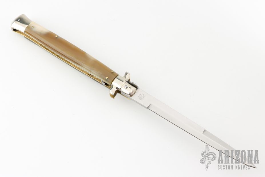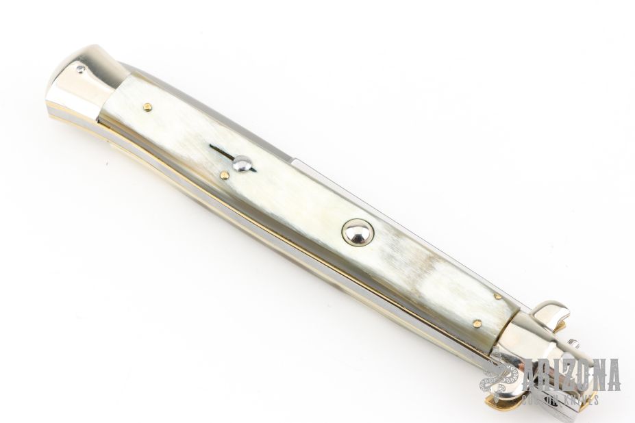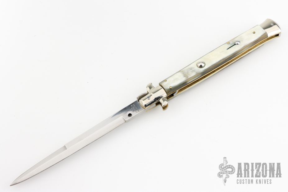 Angelo Campolin Sr. was born in 1923 in Maniago, Italy. He worked on perfecting his knife making skills before WWII and at this time made his first switchblades. After the war, in 1947 he started his company and made 30 stilettos with the marking “Angelo Campolin”. In the 1970’s Angelo’s son Gianni started to work in the company and they were specializing in folding hunting knives and also manual folding stilettos for the Robert Klaas company in Solingen Germany with their Kissing Cranes mark. In 2002 American switchblade collectors Dan Fuller, Brad West, and Tim Zinser were visiting Maniago and enjoying a few glasses of wine in a bar with Angelo Jr. and Gianni. The discussion was about a new name for some knife projects they wanted to pursue. It was Brad West that suggested the tang stamp should be AGA, for Angelo, Gianni, Angelo, thus representing three generations in the knife making business. The Campolins liked it and it stuck. In the beginning it was just a few items, but grew to the point where now there are 12 models and different scale options. The goal has been to offer quality switchblades using the old methods and traditions. Being a collector himself, Angelo Jr. knows what others like. The company headquarters has moved to Austria with production still in the original Maniago shop, as well as the others in Maniago that produce the knives for A.G.A. Campolin.