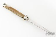 This pick Lock from A.G.A. Campolin features a mirror polished spear point blade with a false top edge. The handle has nickel silver bolsters and pommel with french horn scales over brass liners and stainless steel backspacer.  Comes in original tube with COA. Excellent Condition.