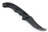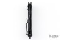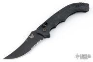 Well-balanced, symmetrical, eye-catching, The Bedlam has a black coated 154CM partially serrated blade that is released with the AXIS locking button. Safety on top of knife. Sculpted black G10 handle fits comfortably and securely. Reversible tip up black clip. Has a few light scuffs, otherwise excellent condition.