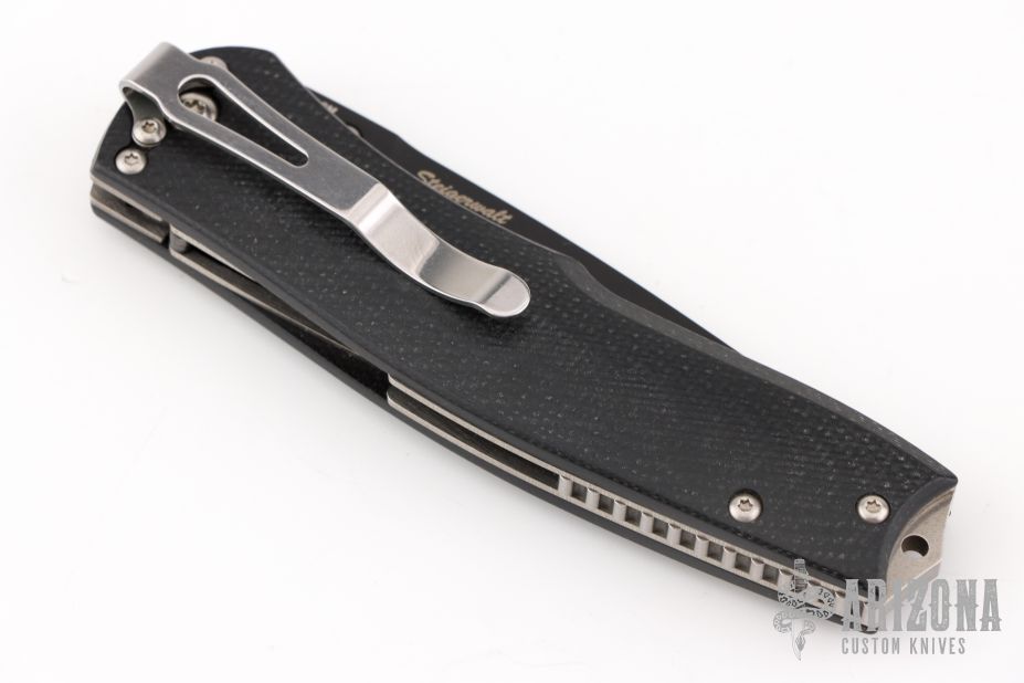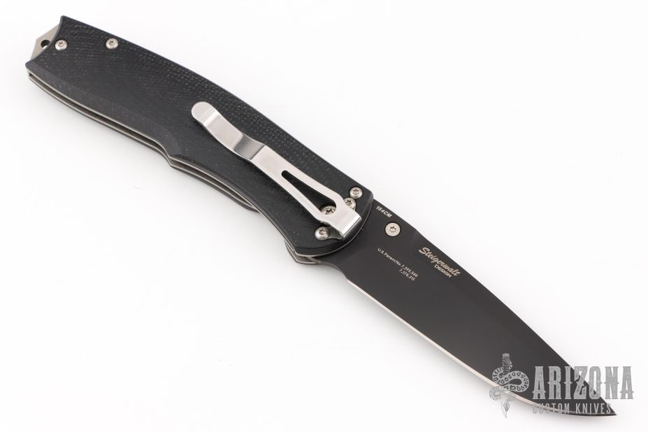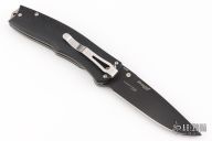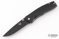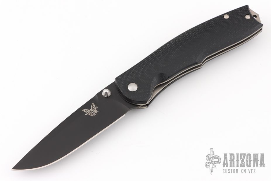 This Torrent by Benchmade is a Ken Steigerwalt design. Features Nitrous assisted opening mechanism. Black blade with single thumbstud and false top edge. The handle has black G10 scales, titanium liners, and stainless steel backspacer and tip down clip. Excellent condition. Comes with a zippered case.